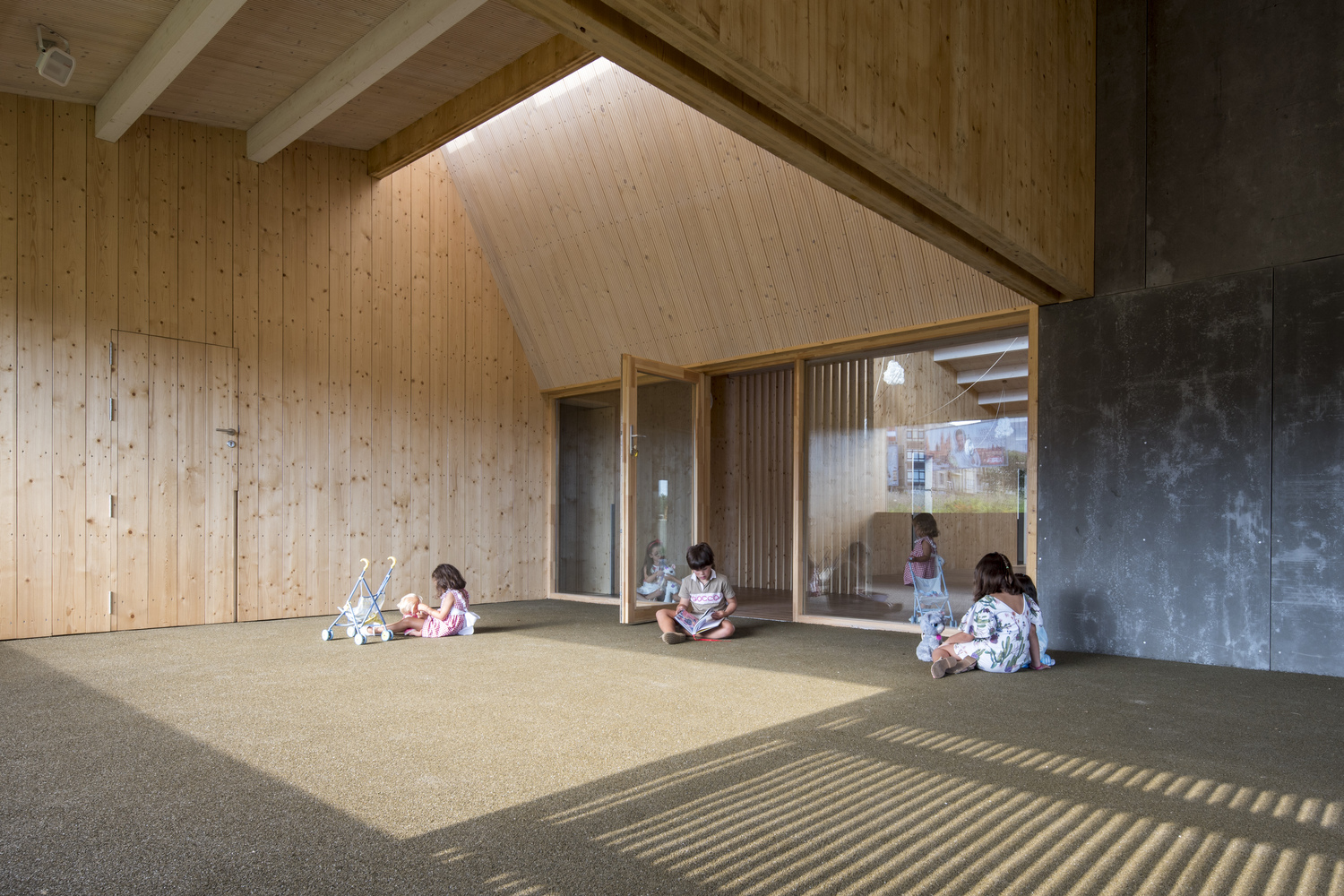 En las escuelas infantiles y centros educativos, la madera favorece un entorno sensorial amable y estimulante.